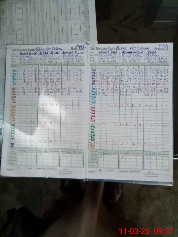 | Remarks (Use Separate Page if Required): Attendance of teaching staff and students on SIS Software is not updated Class 8 is appearing in PECCTA Exam Total 26 App 22 Following Classes are appearing in SBA Exam: Class 2 Class 3 Class 4 Class 5 Class 6 Class 7 NSB Fund Expenditures are in negative Rs236119 Data as per provided by School Staff and found during physical visit | |||||