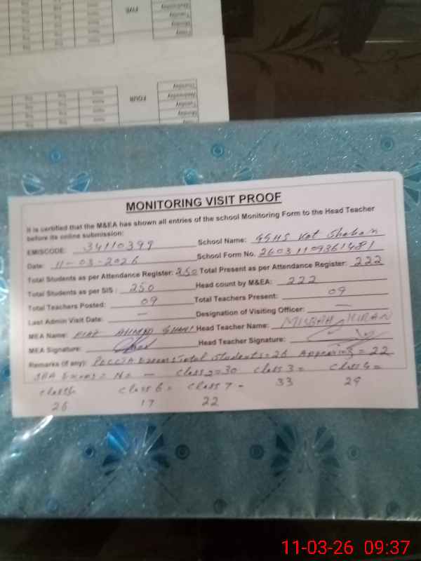 | EMIS Code: 34110399 | Name of School: GGHS KOT SHAHAN | |||