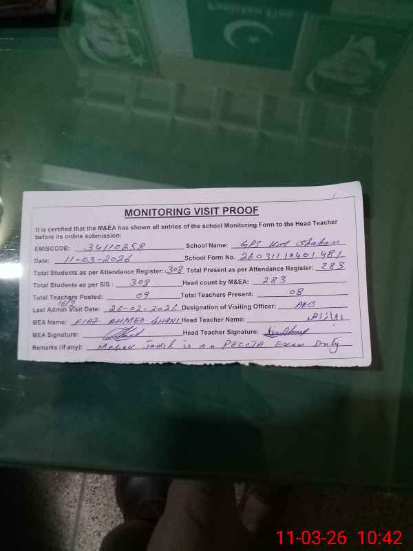 | EMIS Code: 34110258 | Name of School: GPS KOT SHAHAN | |||
