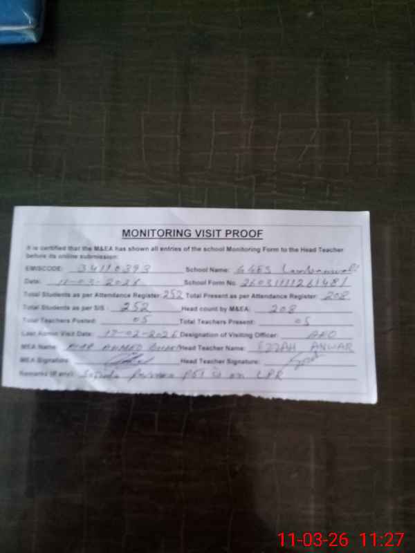 | Certified that this School was Inspected by the Undersigned MEA/DMO Today and the Information Stated Above is as Per Record. | |||||