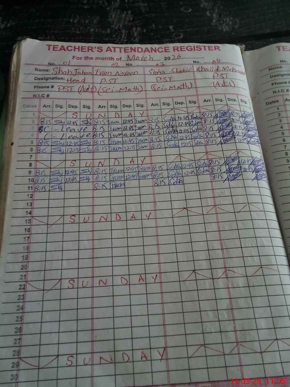 | Name: Sh**** Ja**** Designation: (School Headmaster's/Headmistress's) PST Phone/Cell Number: 03**** |