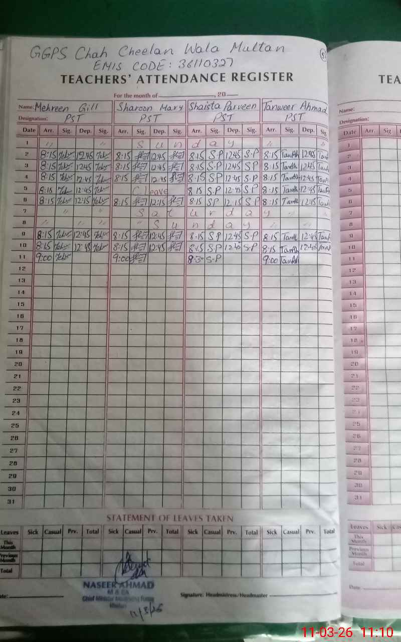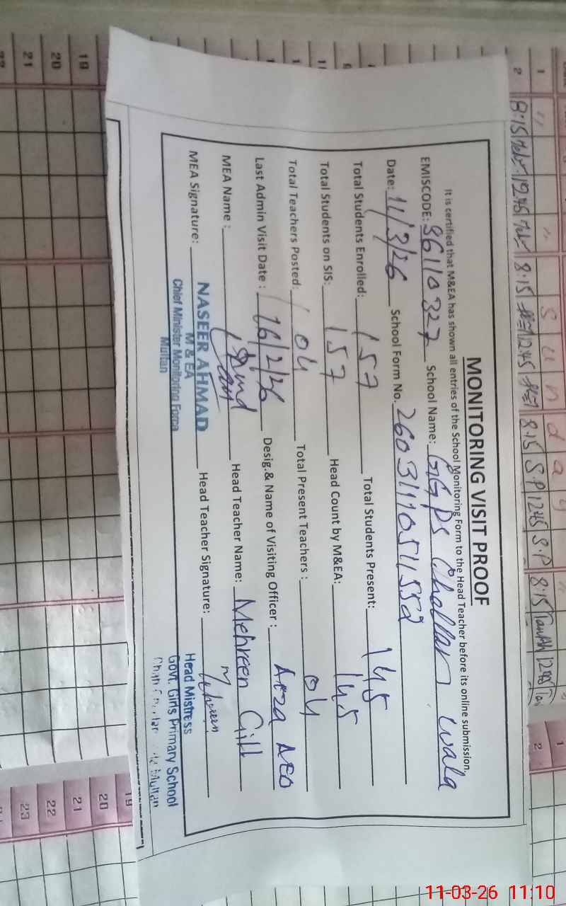 | EMIS Code: 36110327 | Name of School: GGPS CHAH CHEELAN WALA MULTAN | |||