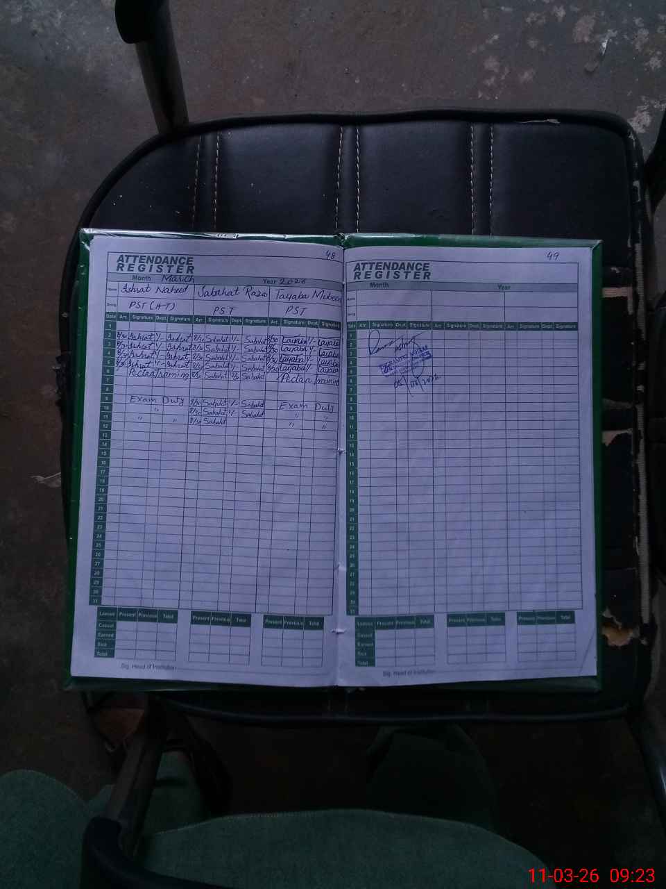 | 33**** | Is**** Na**** | PST Arts | Regular | 0 | 0 | 0 | 0 | 0 | 0 | 0 | 0 | 0 | Exam Duty |