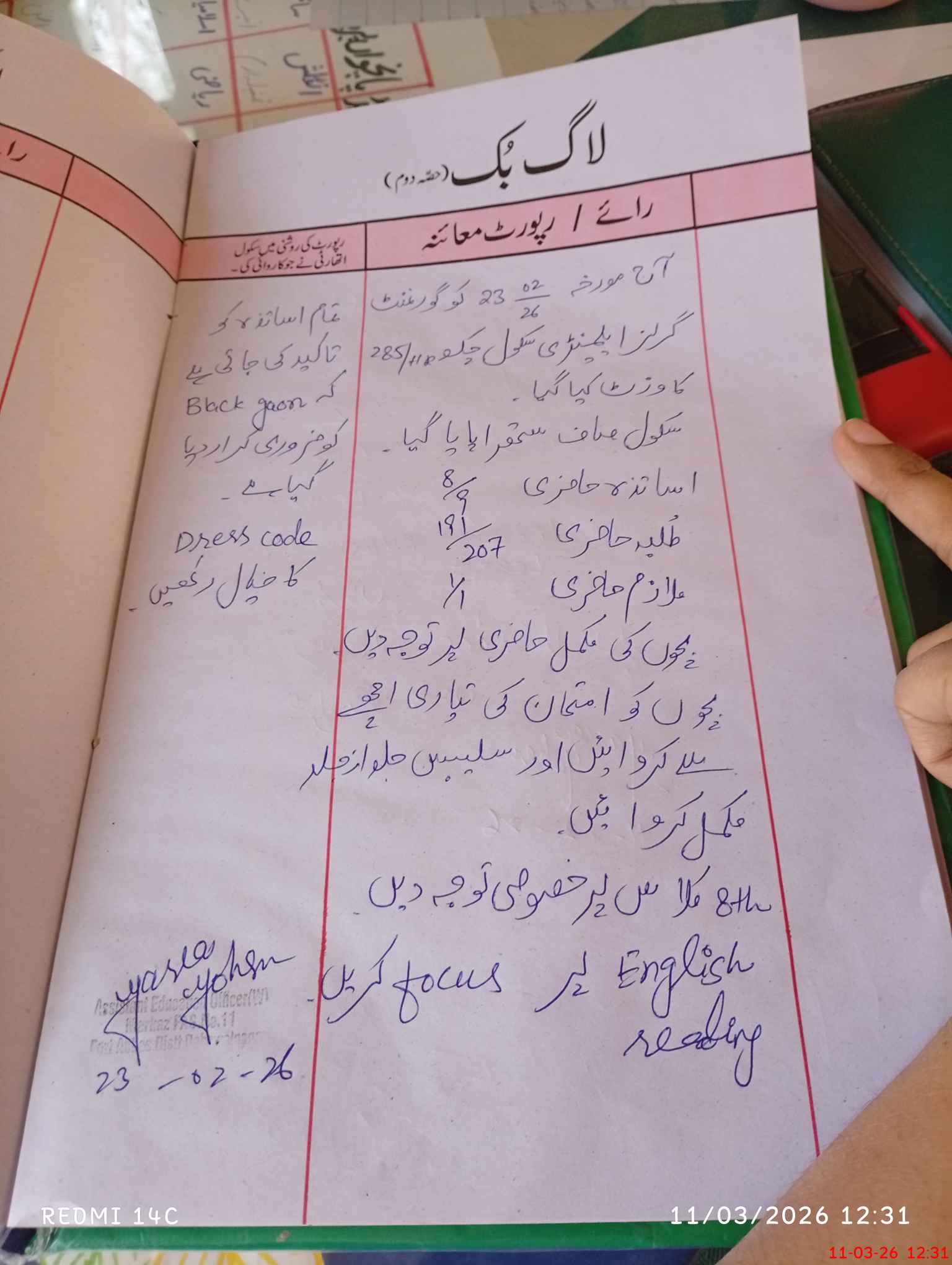 | Attendance Register | Head Teacher | MEA with School | Visit Proof |