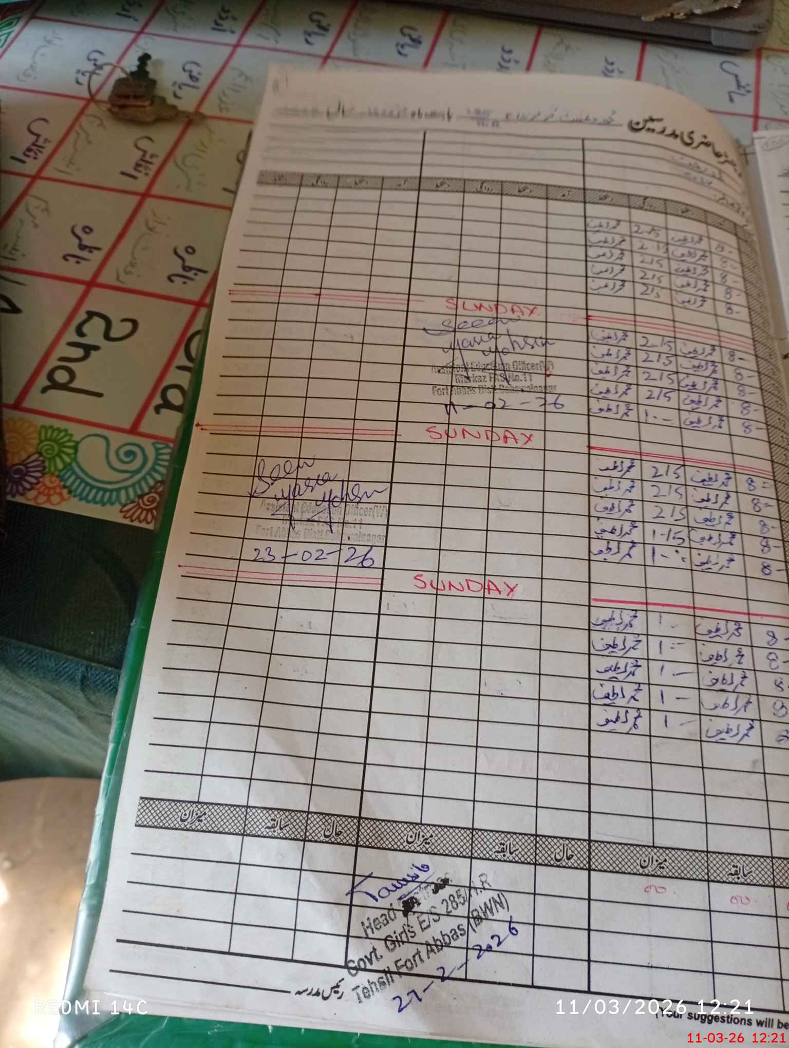 | District: BAHAWALNAGAR | Tehsil: FORT ABBAS | Markaz: FTS-XI-FEMALE | Level: Middle | |