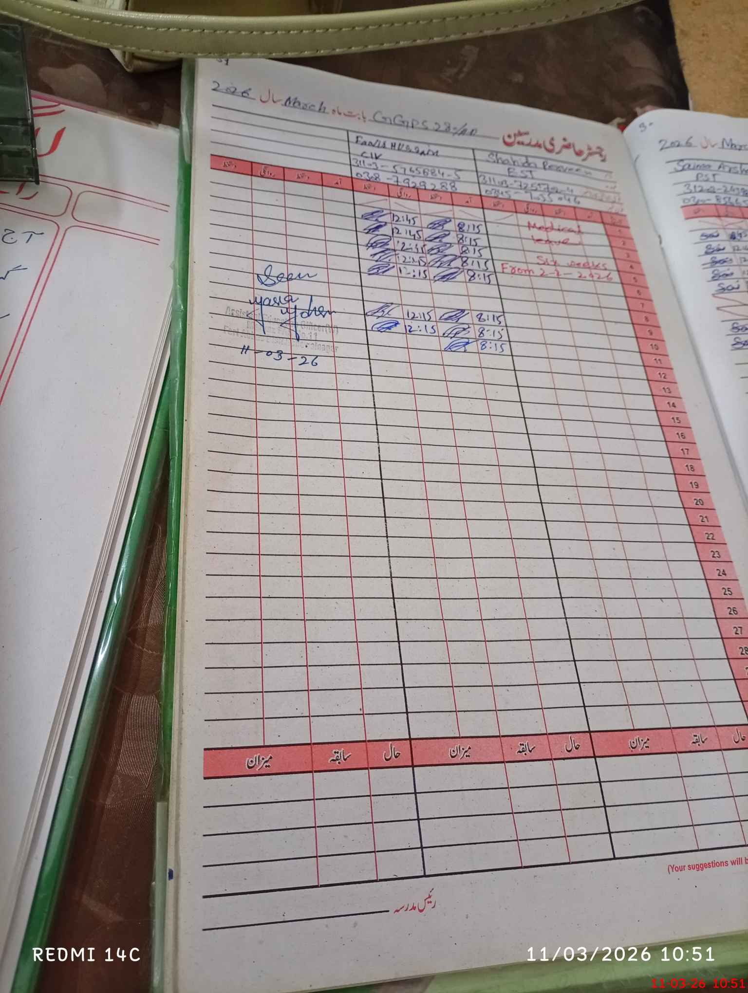 | Leave | Duty | Absent | Maternity | Medical | Ex- Pak |