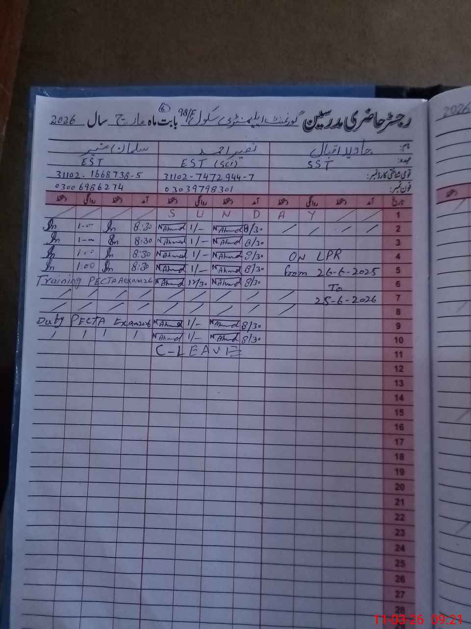 | 31**** | Iq**** Ba**** | ESE (Arts) | Contract | 2 | 0 | 0 | 0 | 0 | 0 | 0 | 0 | 2 | Casual |