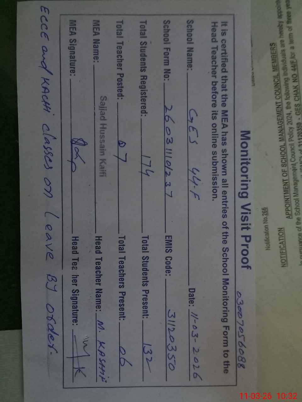 | EMIS Code: 31120350 | Name of School: GES CHAK NO 44/F | |||