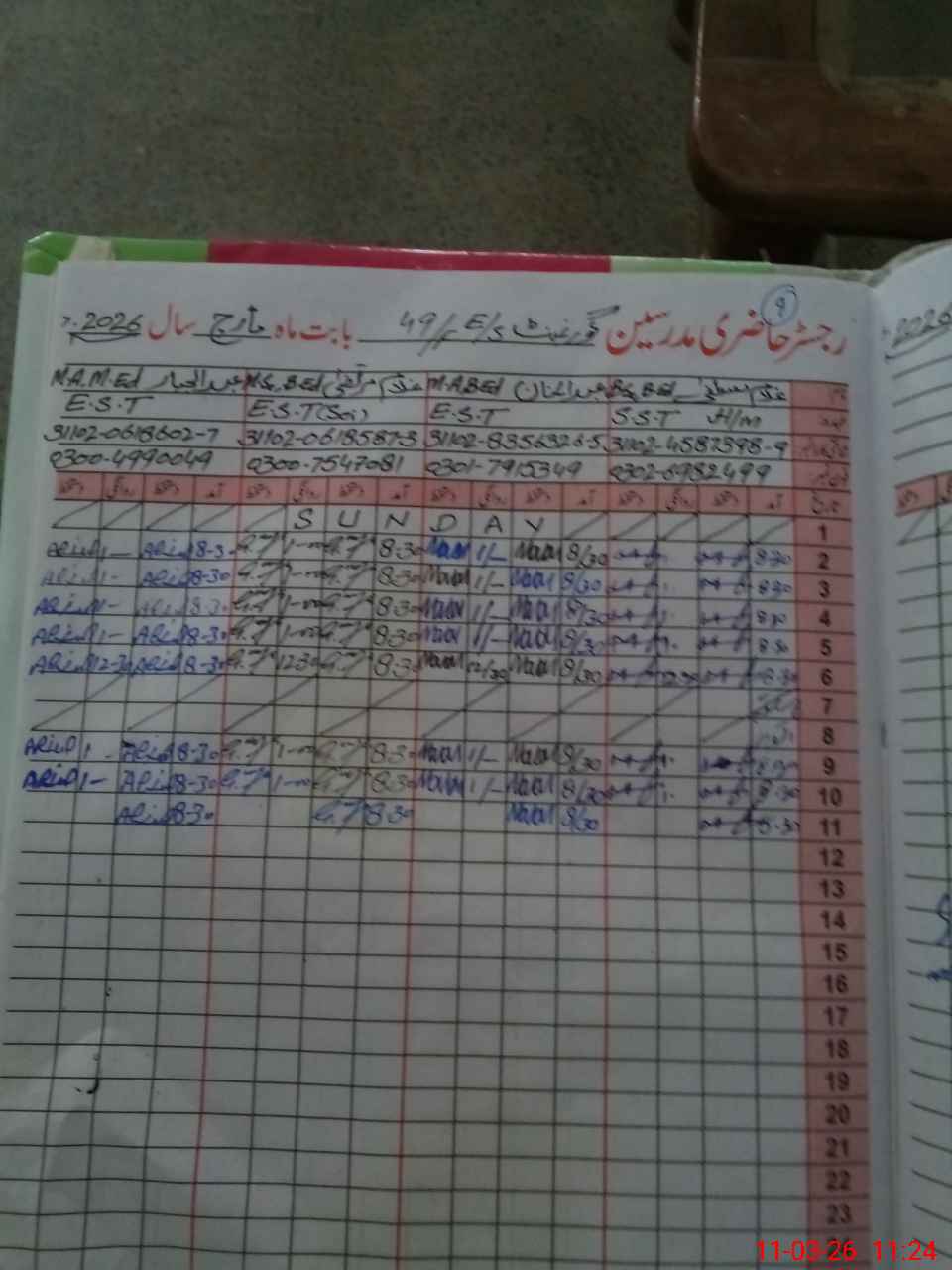 | 31**** | Um**** Hu**** | EST Arabic | Regular | 0 | 0 | 0 | 0 | 0 | 0 | 0 | 0 | 0 | Exam Duty |