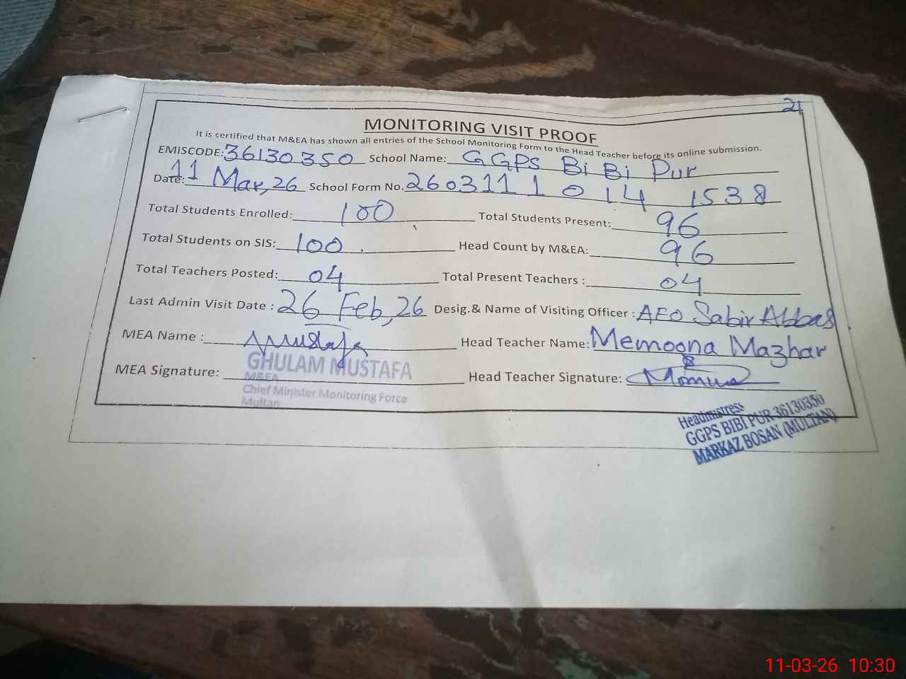 | EMIS Code: 36130350 | Name of School: GGPS BIBI PUR NEAR MOZA BIBI PUR | |||