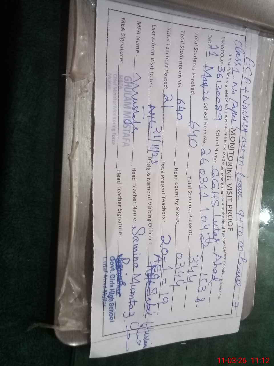 | EMIS Code: 36130089 | Name of School: GGHS LUTAF ABAD | |||