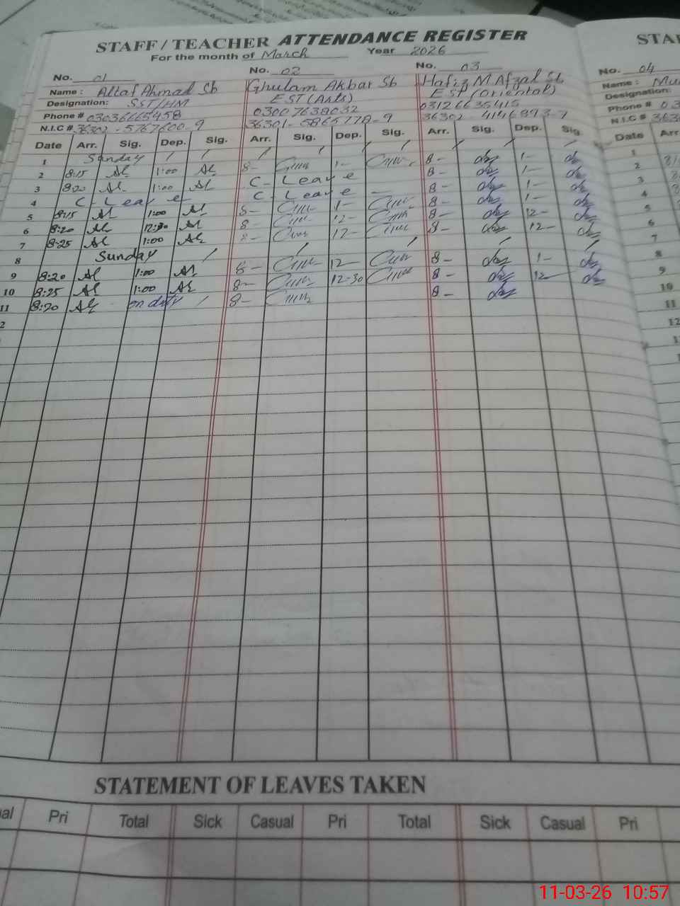 | Name: AL**** AH**** Designation: (School Headmaster's/Headmistress's) S.S.T.(SC) Phone/Cell Number: 03**** |