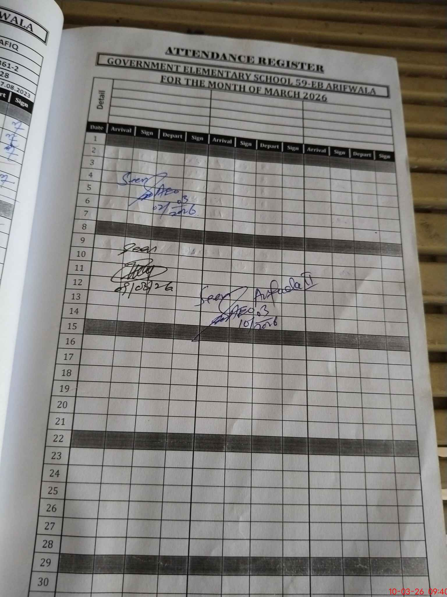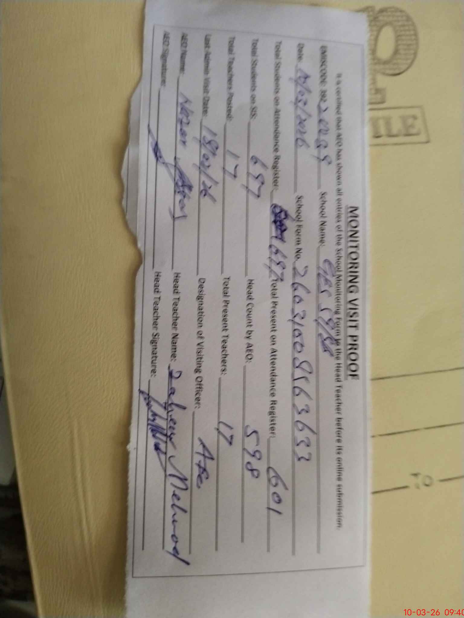 | Attendance Register | Head Teacher | MEA with School | Visit Proof |