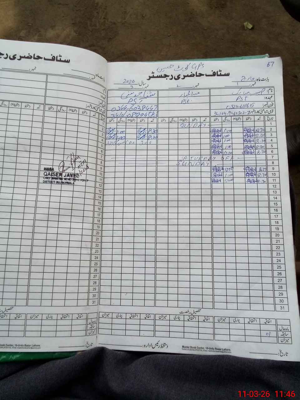 | CNIC | Full Name | Designation | R/C | Absence During Last Calender Month |