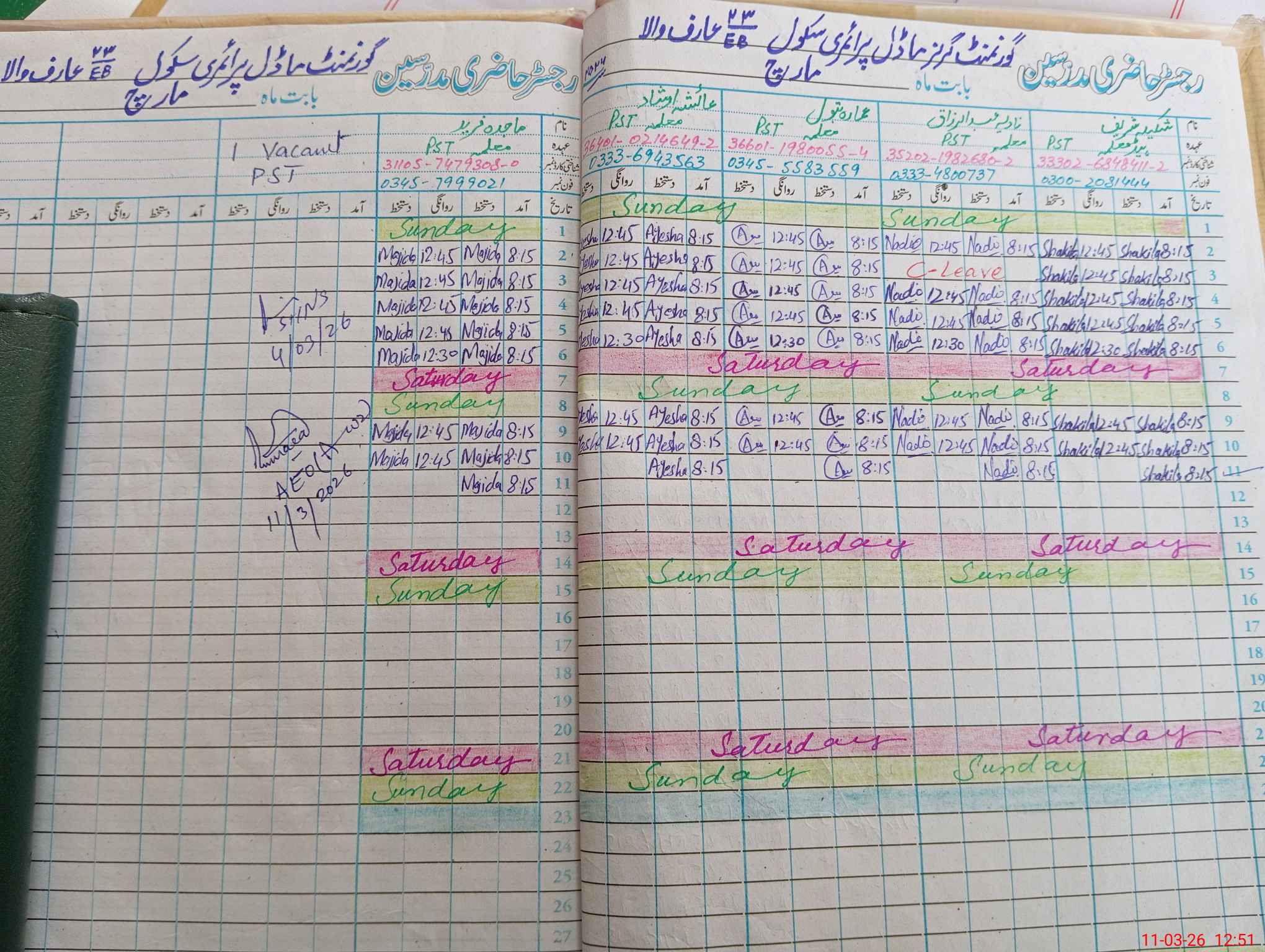 | Name: AY**** IR**** Designation: (School Headmaster's/Headmistress's) PST Phone/Cell Number: 03**** |