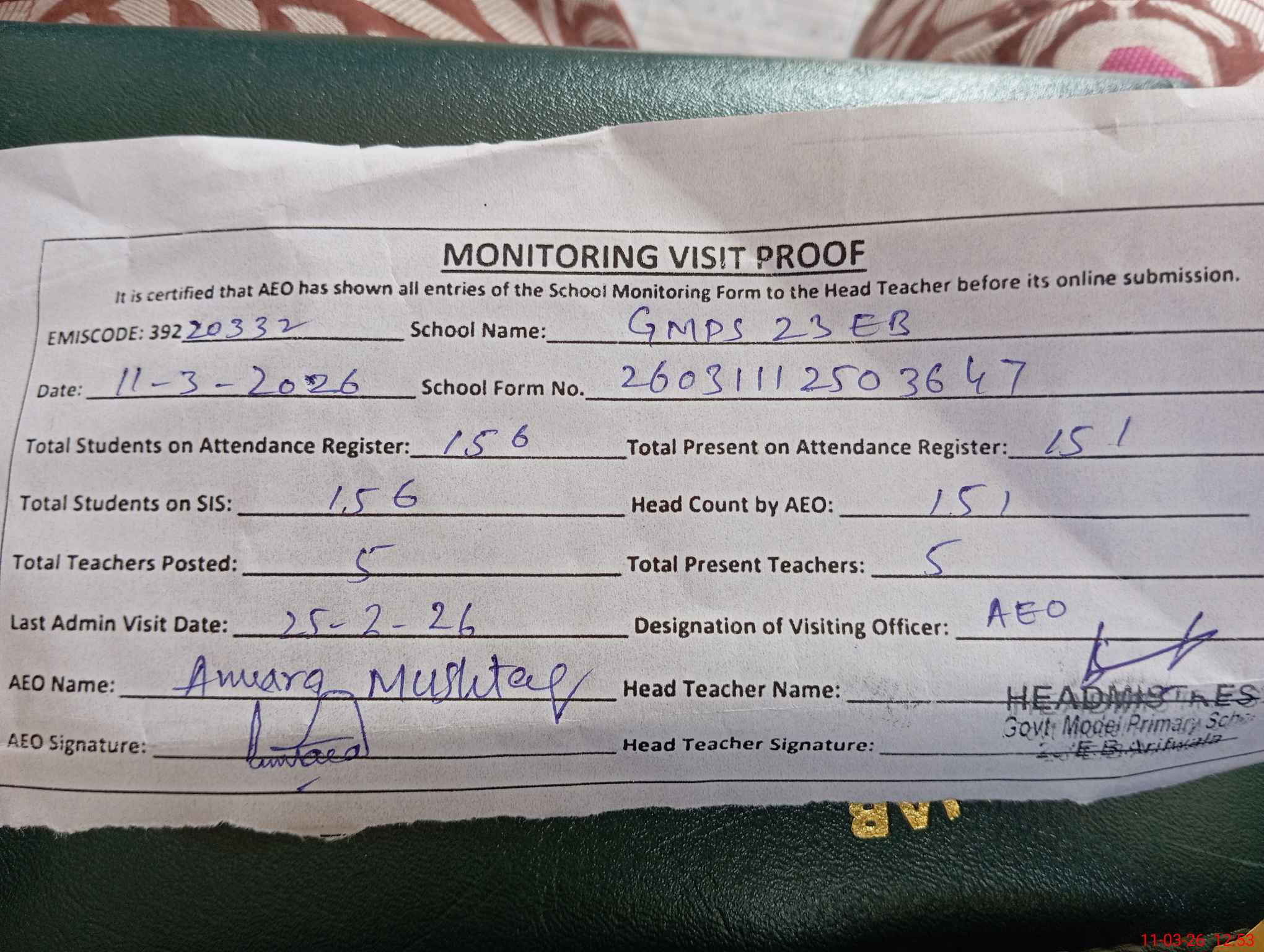 | EMIS Code: 39220332 | Name of School: GMPS CHAK NO. 23 EB | |||