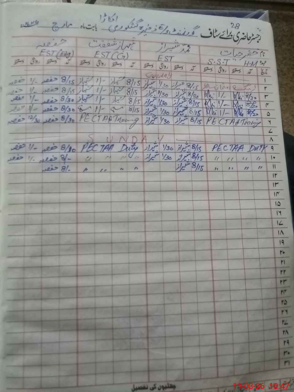 | 35**** | Ma**** Al**** Ra**** Ta**** | PST | Regular | 0 | 0 | 0 | 0 | 0 | 0 | 0 | 0 | 0 | Exam Duty |