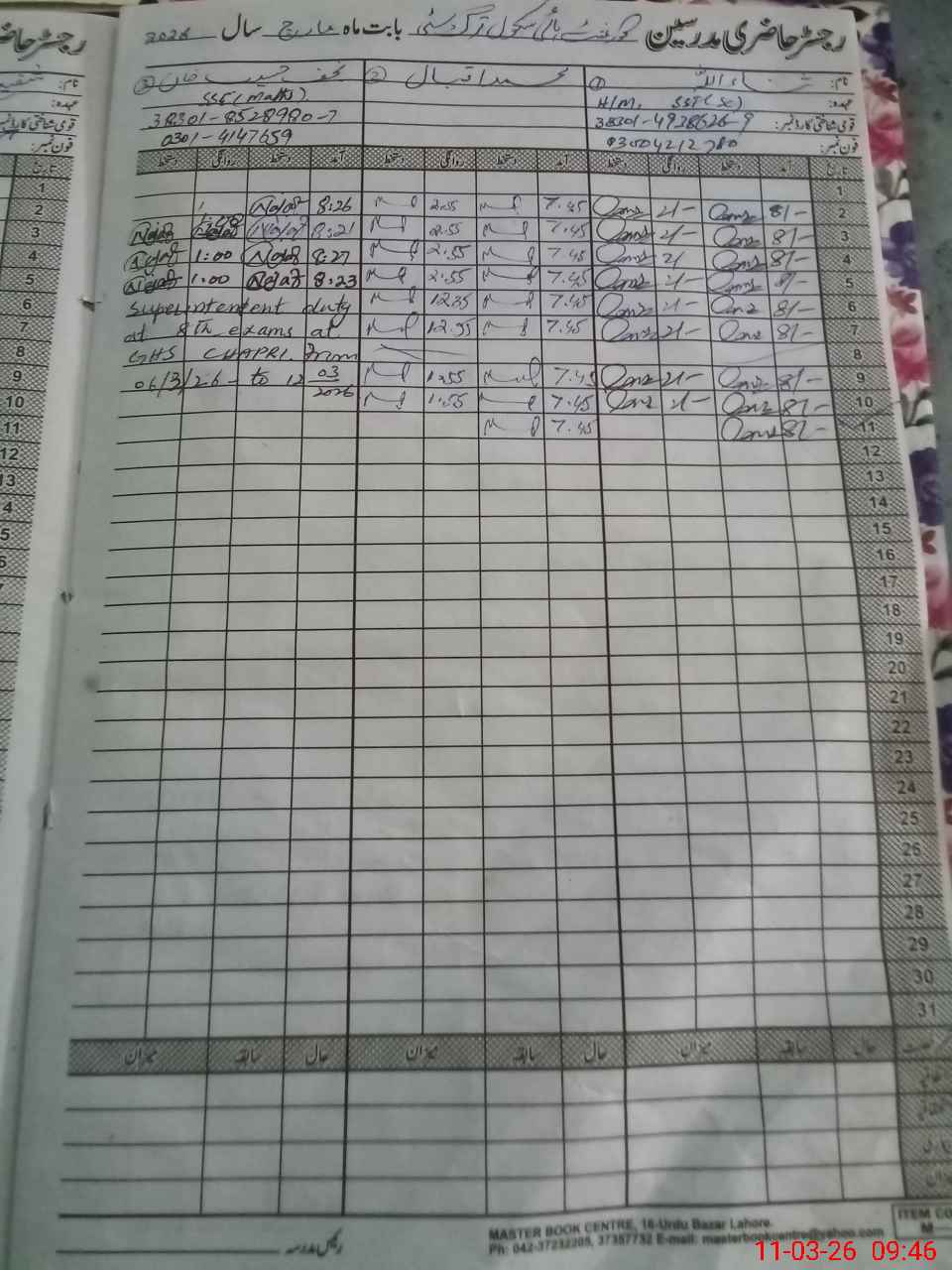 | 38**** | Gh**** Za**** UlAb**** | EST Maths | Regular | 0 | 0 | 0 | 0 | 0 | 0 | 0 | 0 | 0 | Exam Duty |