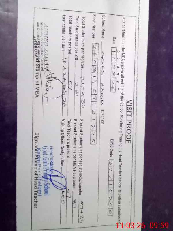 | EMIS Code: 37210250 | Name of School: GGPS KARIM PUR | |||