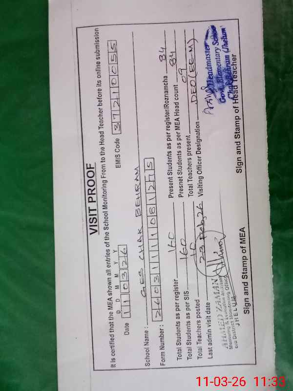 | EMIS Code: 37210055 | Name of School: GES CHAK BEHRAM | |||