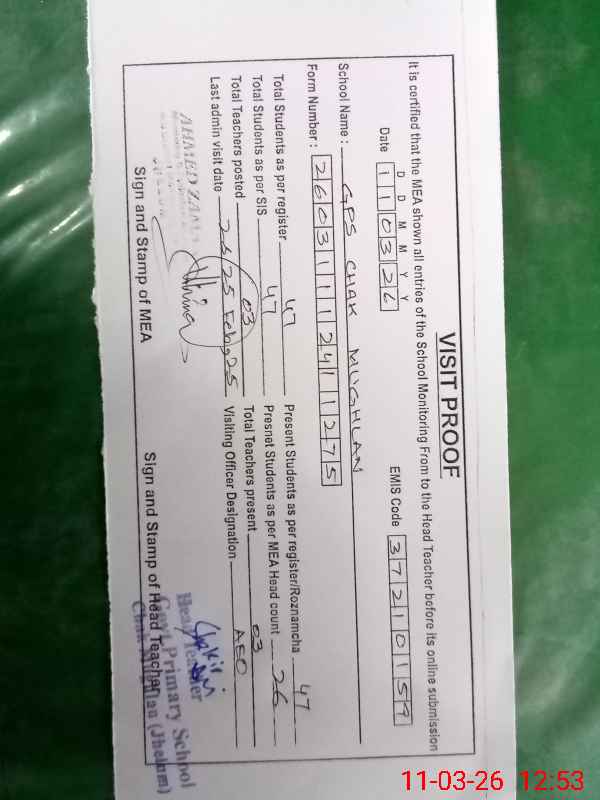 | EMIS Code: 37210159 | Name of School: GPS CHAK MUGHLAN | |||
