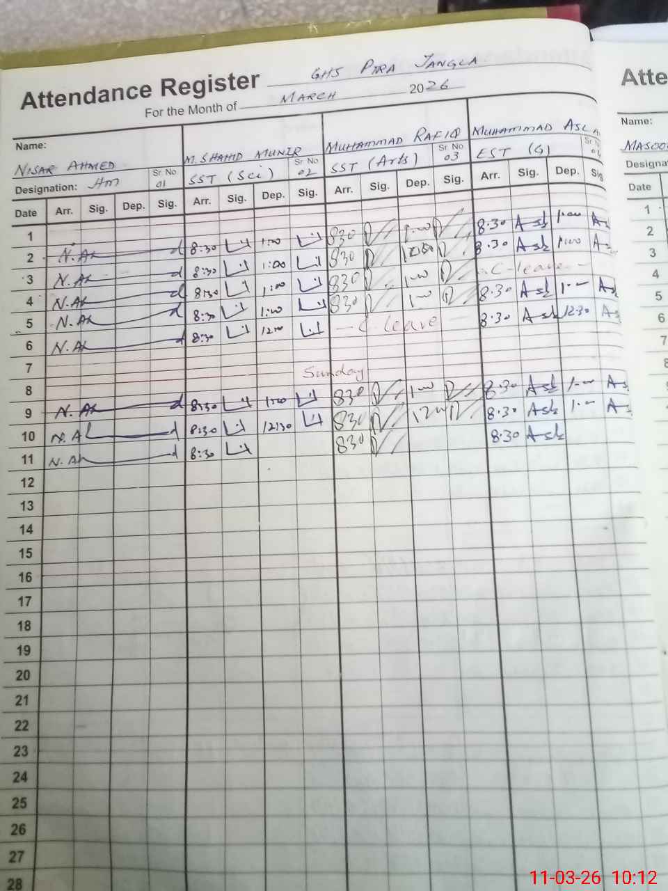 | 37**** | Ni**** Ah**** | Headmaster (Urdu) | Regular | 0 | 0 | 0 | 0 | 0 | 0 | 0 | 0 | 0 | Absent (Un-Authorized) |