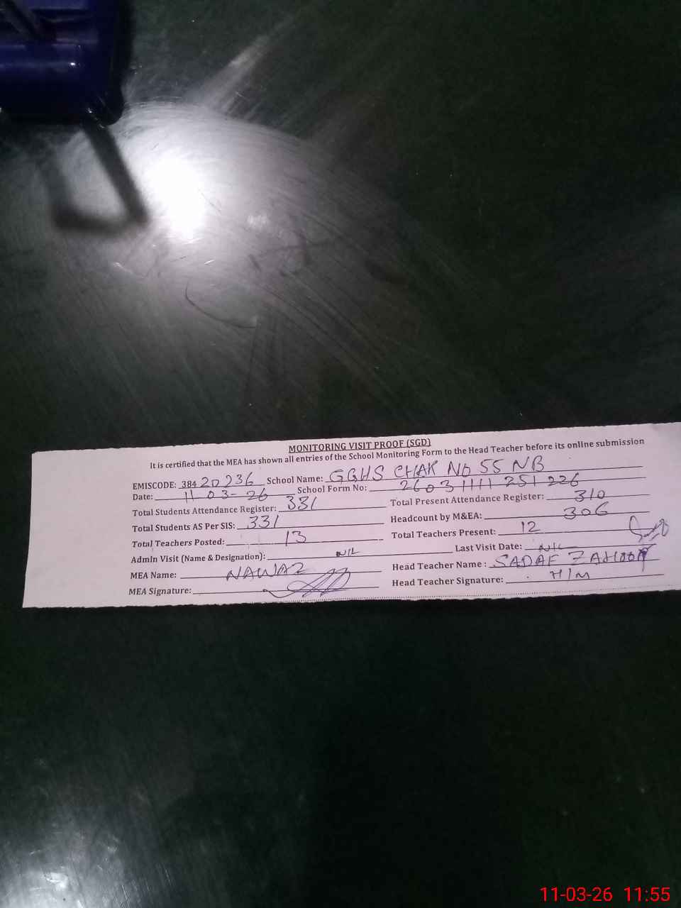 | EMIS Code: 38420236 | Name of School: GGHS CHAK NO.55 NB | |||