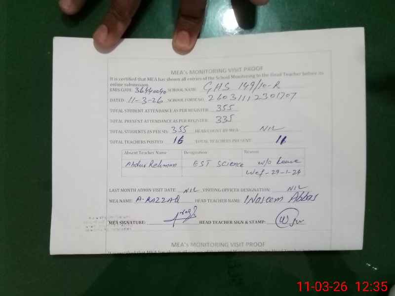 | EMIS Code: 36440040 | Name of School: GHS 149/10-R, JAHANIAN | |||