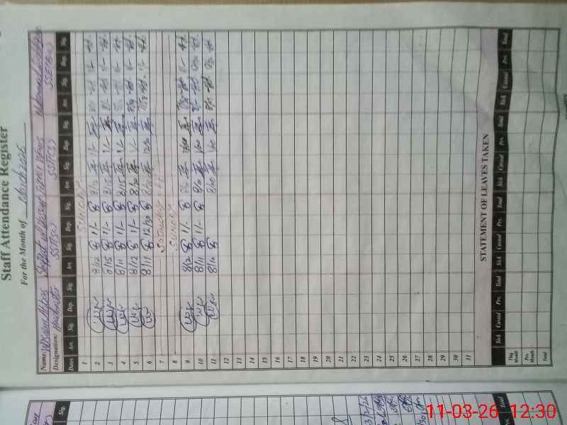 | 36**** | Ab**** Qa**** | PST Arts | Regular | 0 | 0 | 0 | 0 | 0 | 0 | 0 | 0 | 0 | Exam Duty |