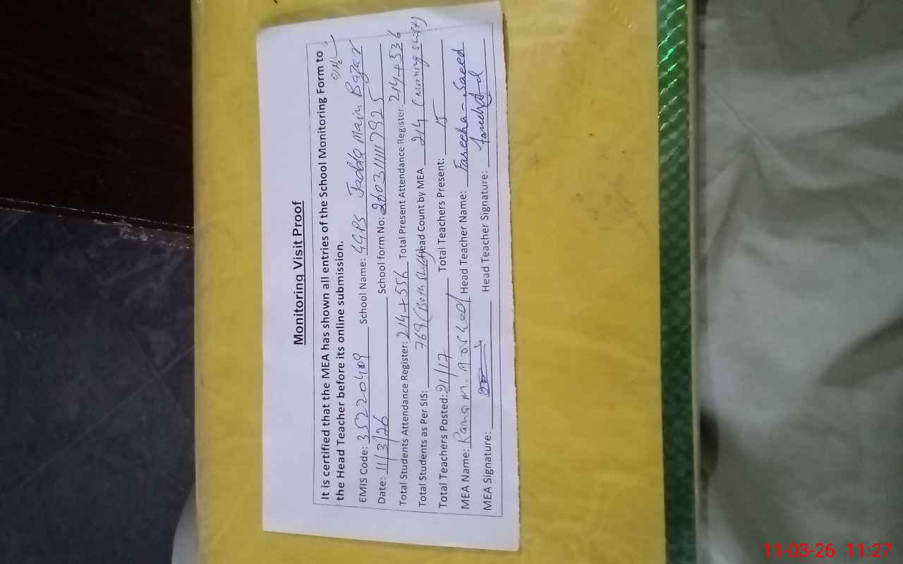 | Attendance Register | Head Teacher | MEA with School | Visit Proof |