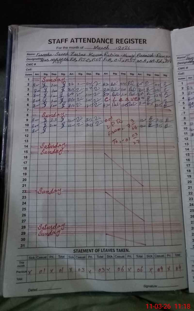 | Name: Fa**** Sa**** Designation: (School Headmaster's/Headmistress's) PST Phone/Cell Number: 03**** |