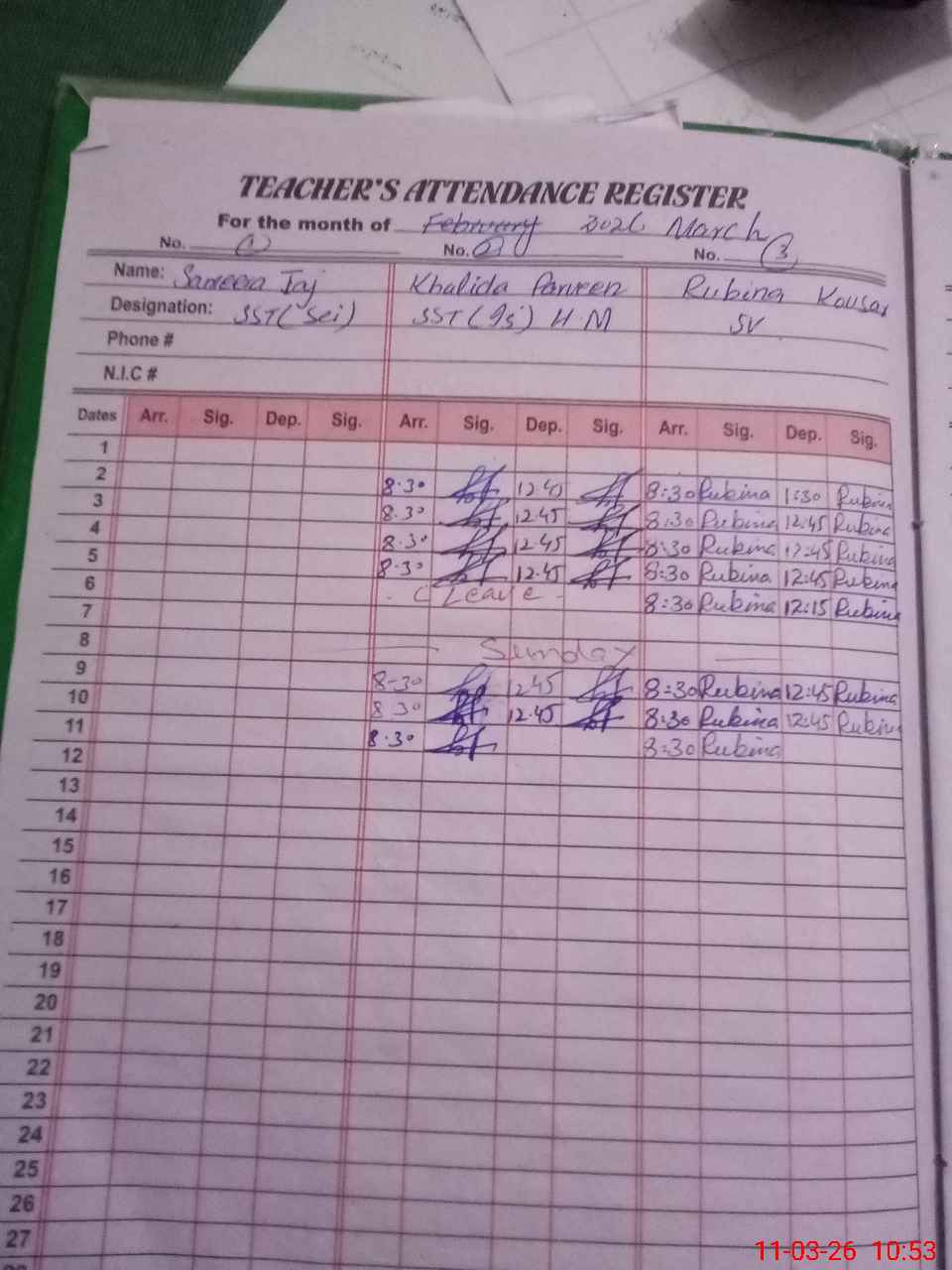 | 33**** | Sa**** Ta**** | SST Computer Science | Regular | 0 | 0 | 0 | 0 | 0 | 0 | 0 | 0 | 0 | Absent (Un-Authorized) |