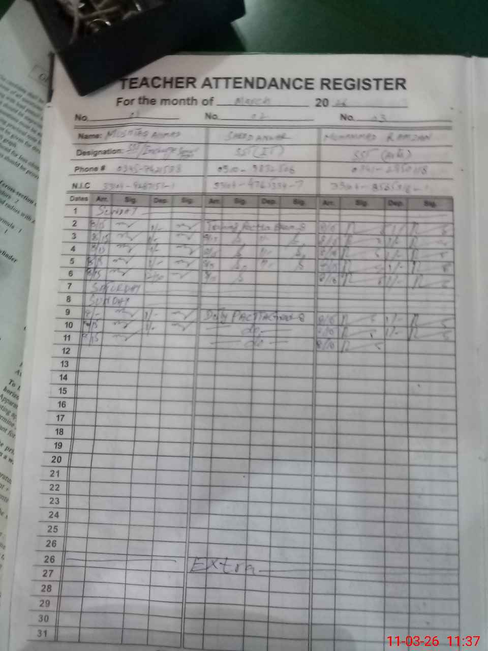 | 33**** | Am**** | EST Urdu | Regular | 0 | 0 | 0 | 0 | 0 | 0 | 0 | 0 | 0 | Absent (Un-Authorized) |