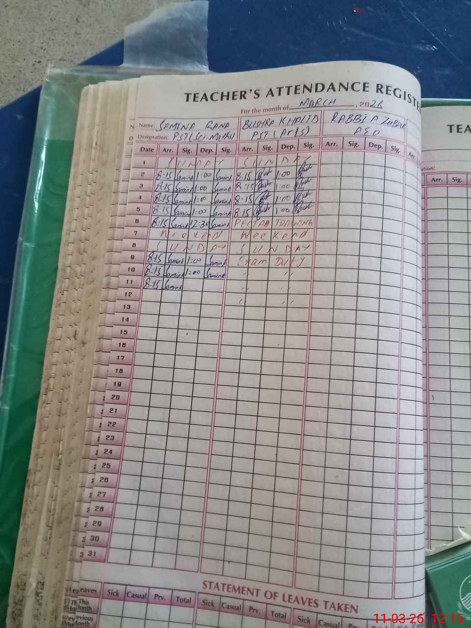 | 31**** | Bu**** Kh**** | PST (Science-Math) | Regular | 0 | 0 | 0 | 0 | 0 | 0 | 0 | 0 | 0 | Exam Duty |