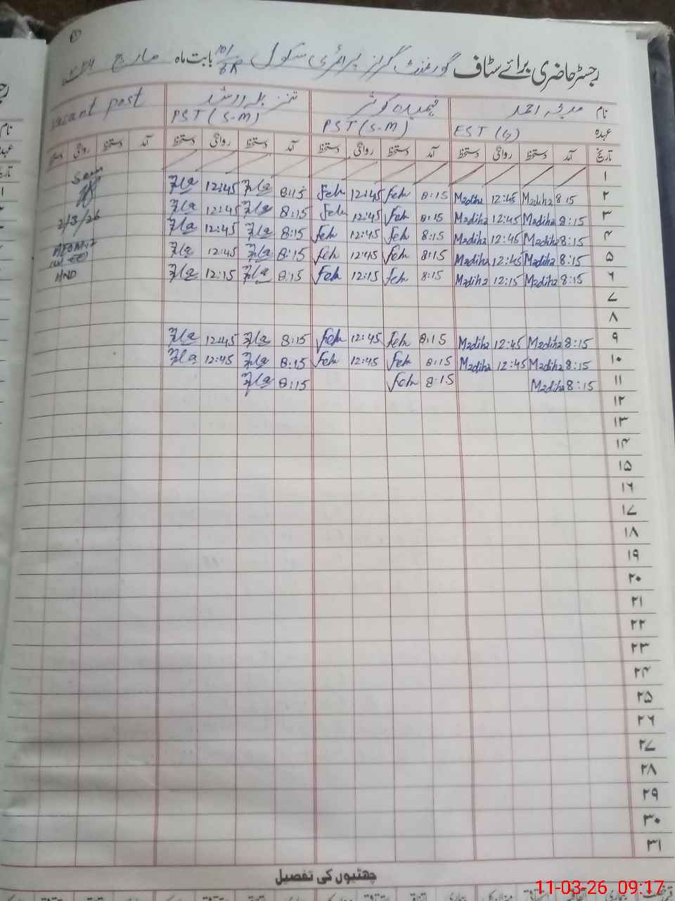 | CNIC | Full Name | Designation | R/C | Absence During Last Calender Month |