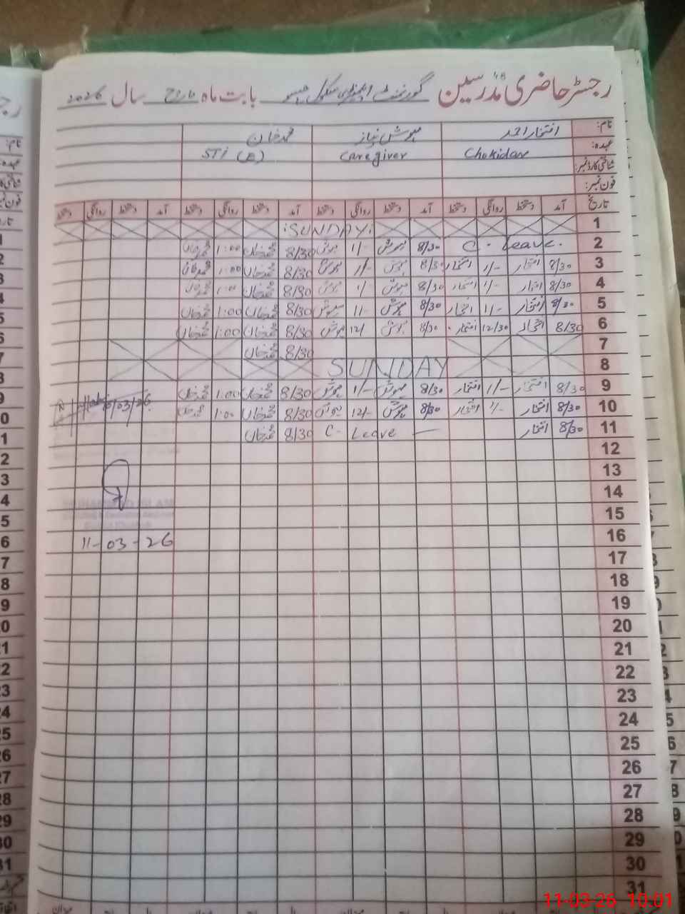 | 38**** | Mu**** Sa**** | PST Arts | Regular | 0 | 0 | 0 | 0 | 0 | 0 | 0 | 0 | 0 | Exam Duty |