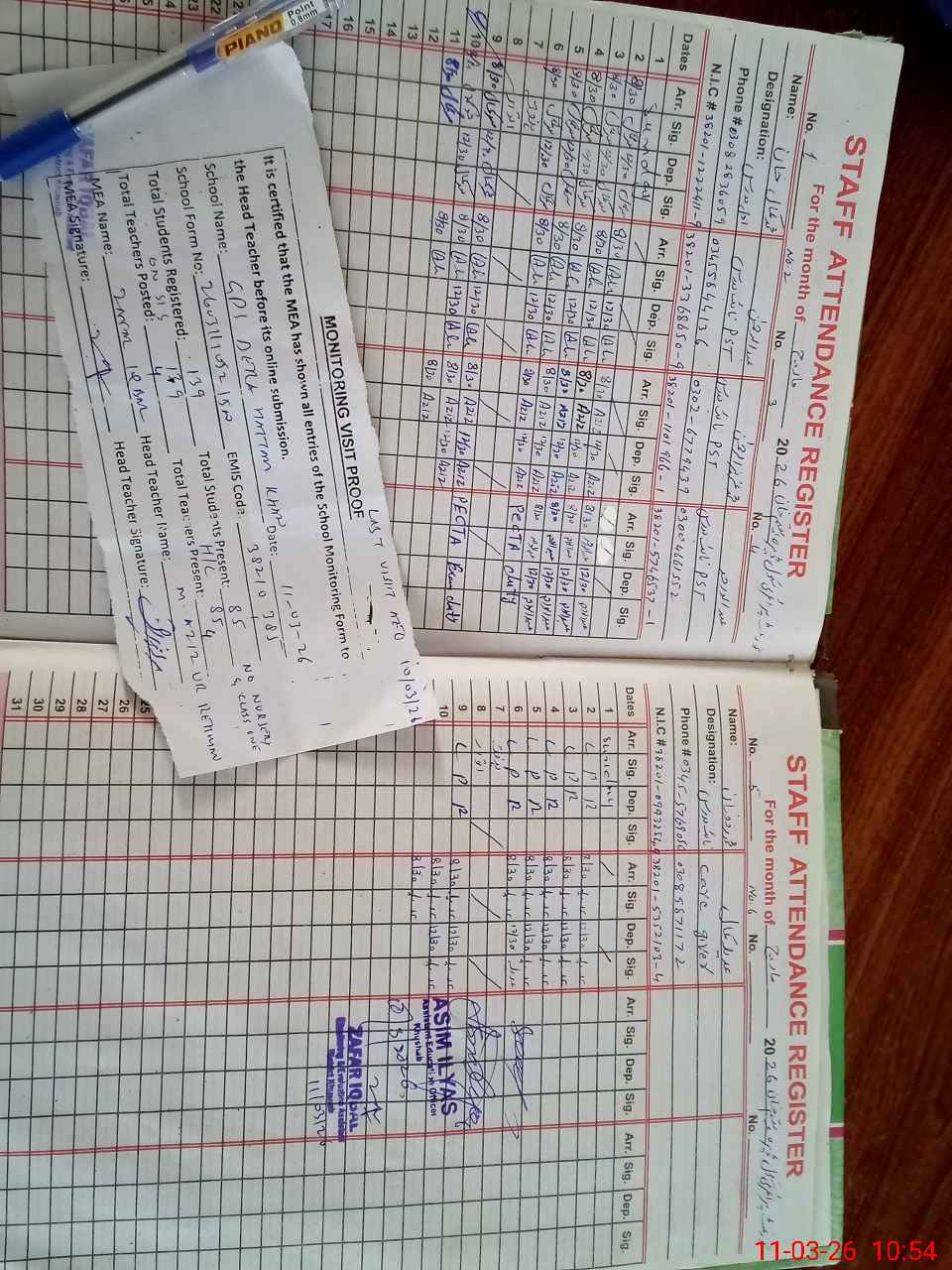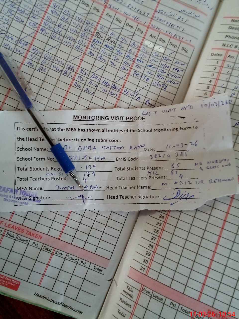 | Attendance Register | Head Teacher | MEA with School | Visit Proof |