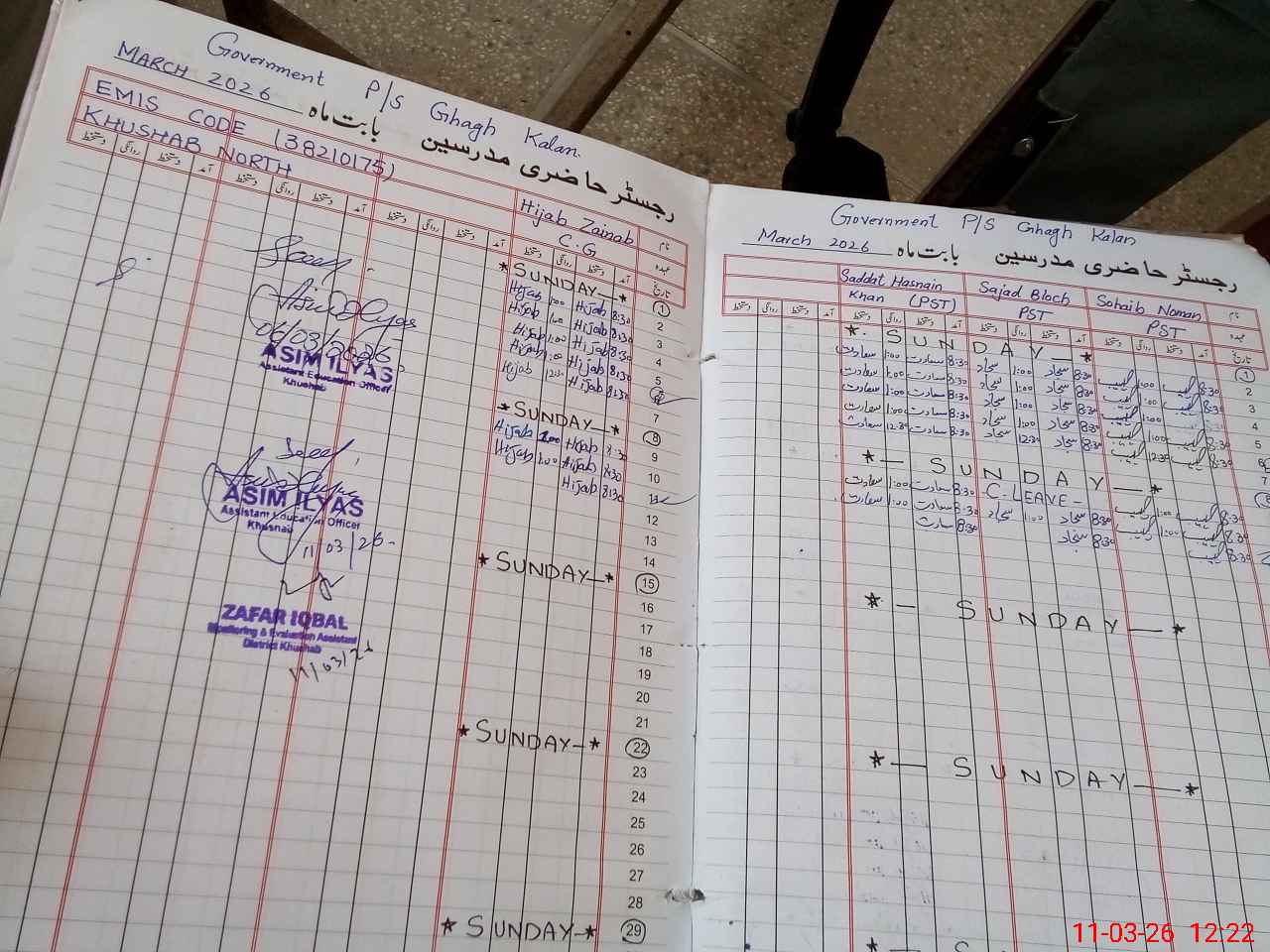 | District: KHUSHAB | Tehsil: KHUSHAB | Markaz: KHUSHAB (NORTH) (MALE) | Level: Primary | |