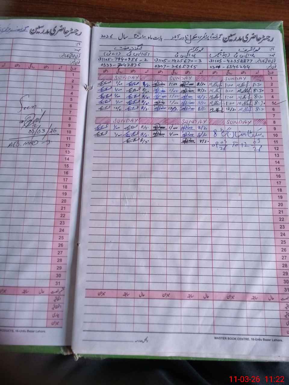| Remarks (Use Separate Page if Required): Nursery class on holidays Head Teacher PST Muhammad Ashraf on official exam duty | |||||