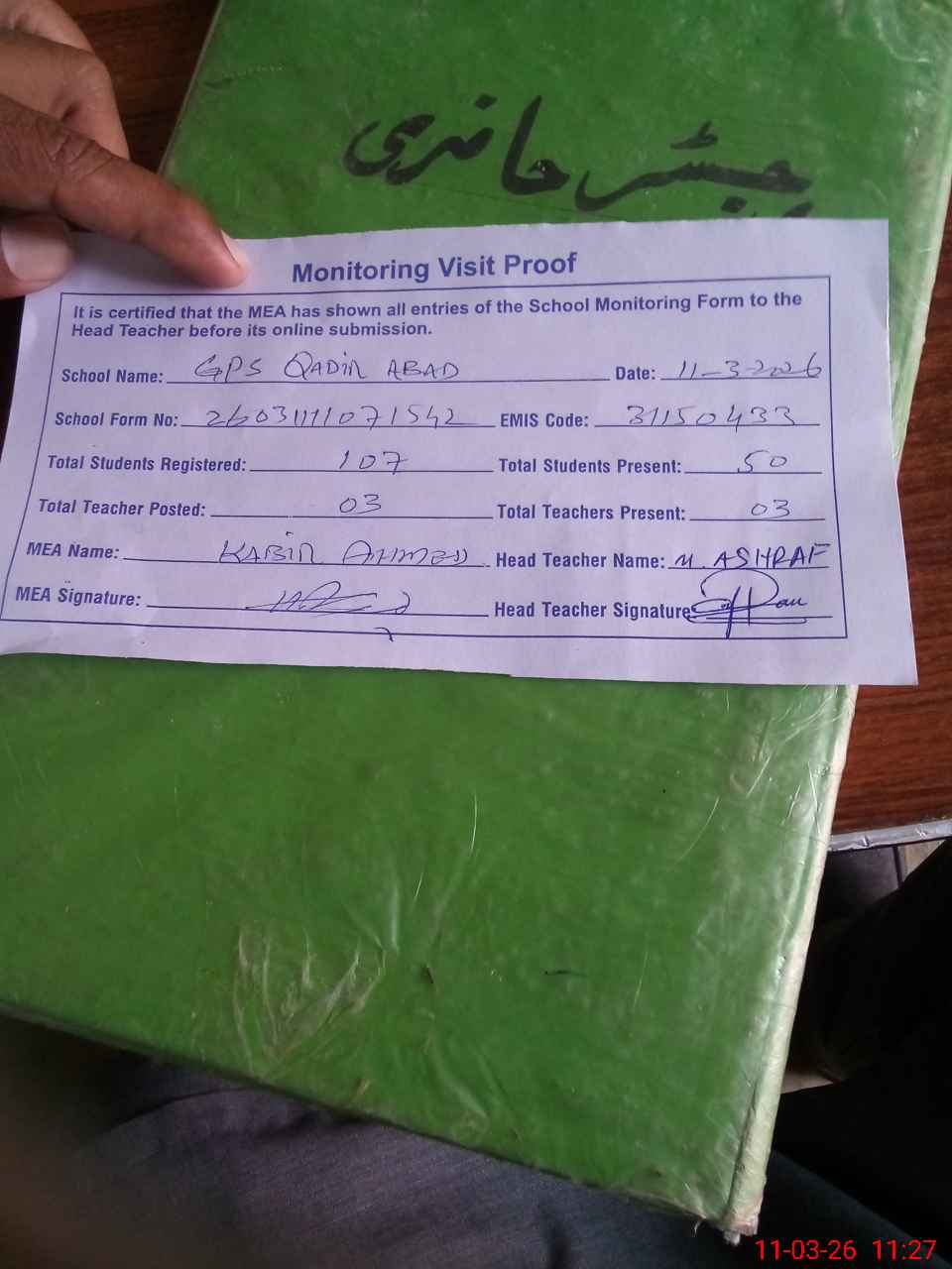 | EMIS Code: 31150433 | Name of School: GPS QADIR ABAD | |||