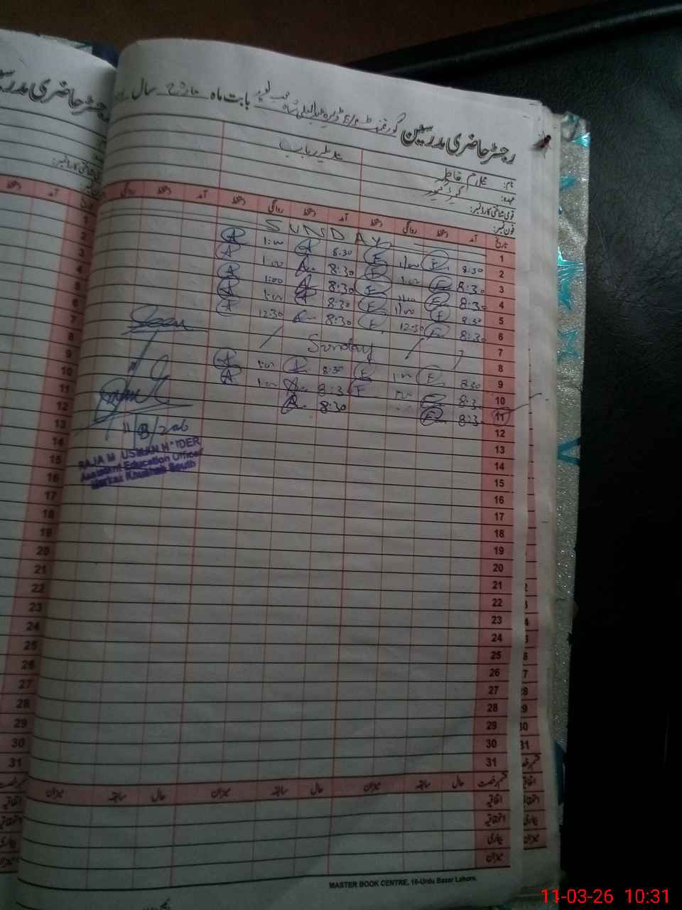 | CNIC | Full Name | Designation | R/C | Absence During Last Calender Month |