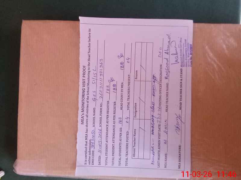 | EMIS Code: 36430052 | Name of School: GES 51/15-L, MIAN CHANNU | |||
