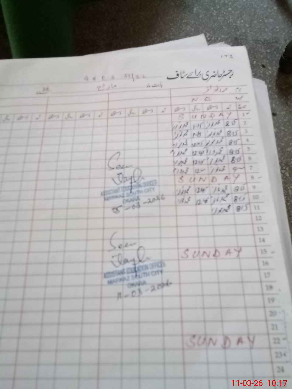 | CNIC | Full Name | Designation | R/C | Absence During Last Calender Month |