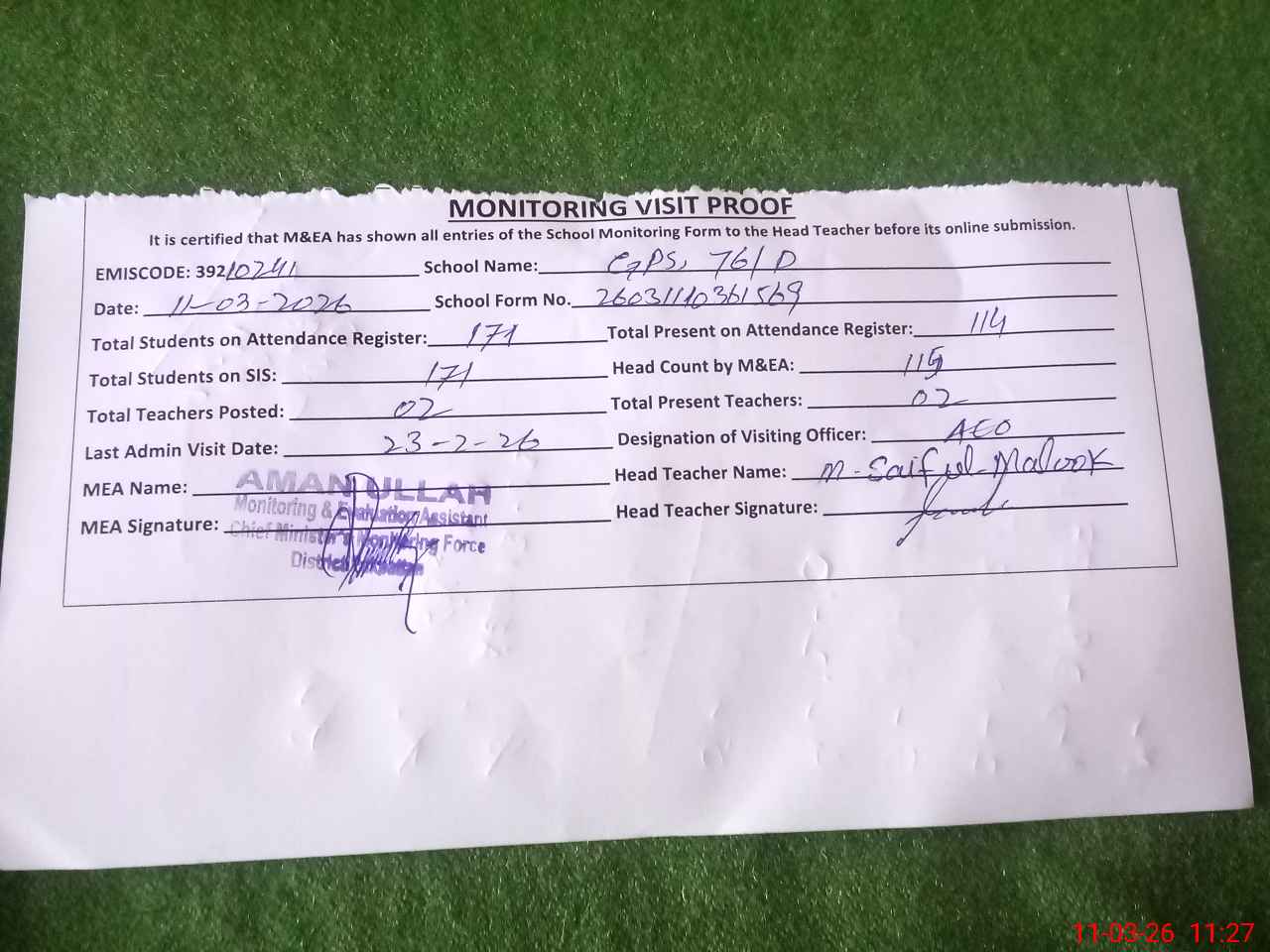 | EMIS Code: 39210241 | Name of School: GPS CHAK NO. 76/D | |||