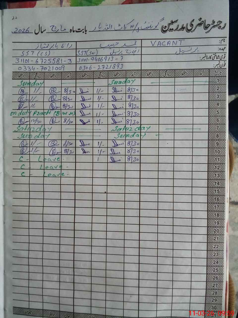 | 31**** | Mu**** Al**** | PST Science/Maths | Regular | 3 | 0 | 0 | 0 | 0 | 0 | 0 | 0 | 3 | Exam Duty |