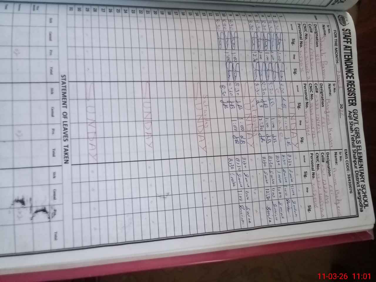 | Name: SH**** PA**** Designation: (School Headmaster's/Headmistress's) SST ART Phone/Cell Number: 03**** |