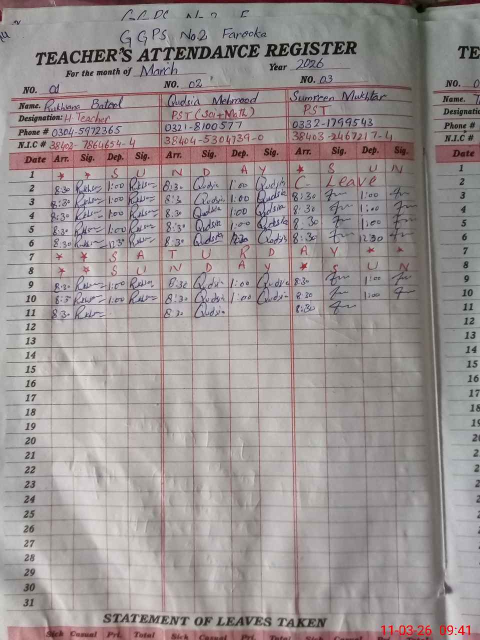 | Name: RU**** BA**** Designation: (School Headmaster's/Headmistress's) PST Phone/Cell Number: 03**** |