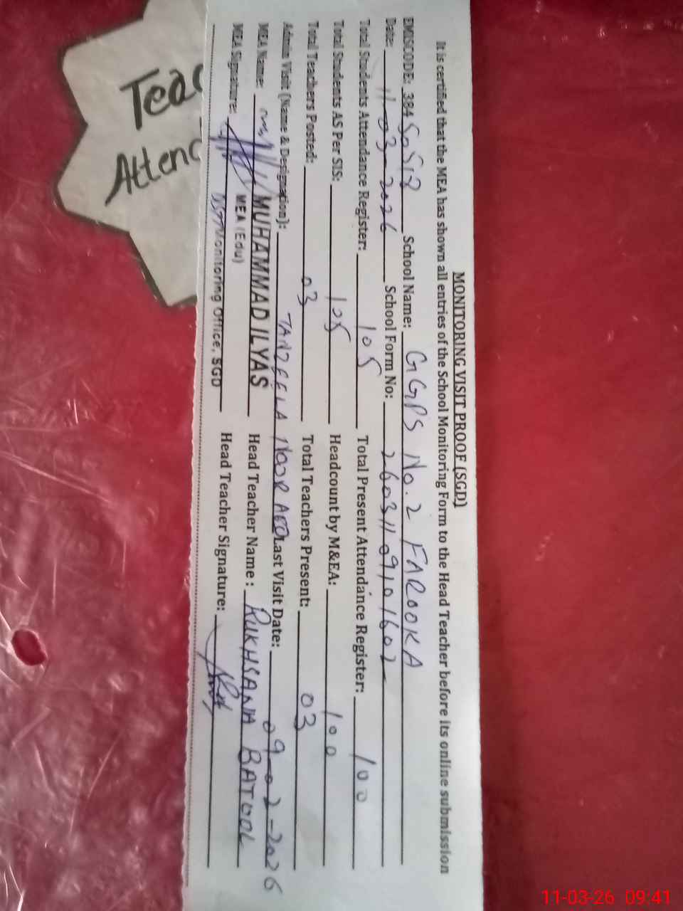 | EMIS Code: 38450518 | Name of School: GGPS NO.2 FAROOKA | |||