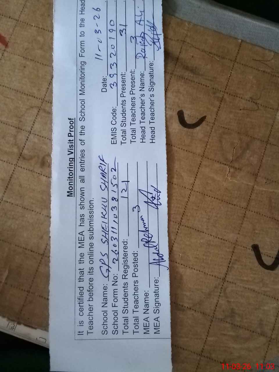 | EMIS Code: 39320190 | Name of School: GPS SHEIKHU SHARIF | |||