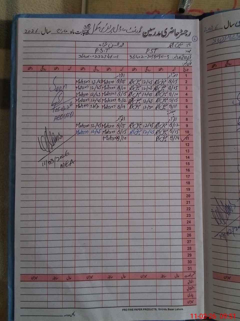 | Name: FA**** AH**** Designation: (School Headmaster's/Headmistress's) PST Phone/Cell Number: 03**** |